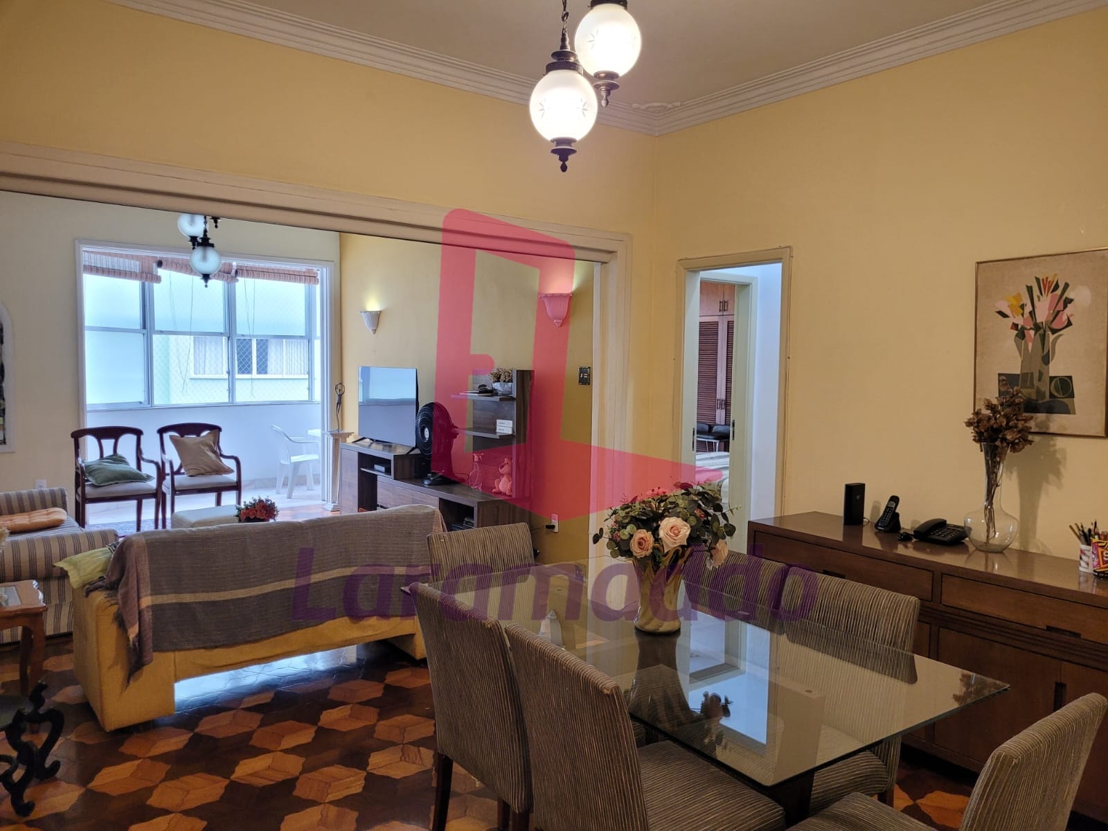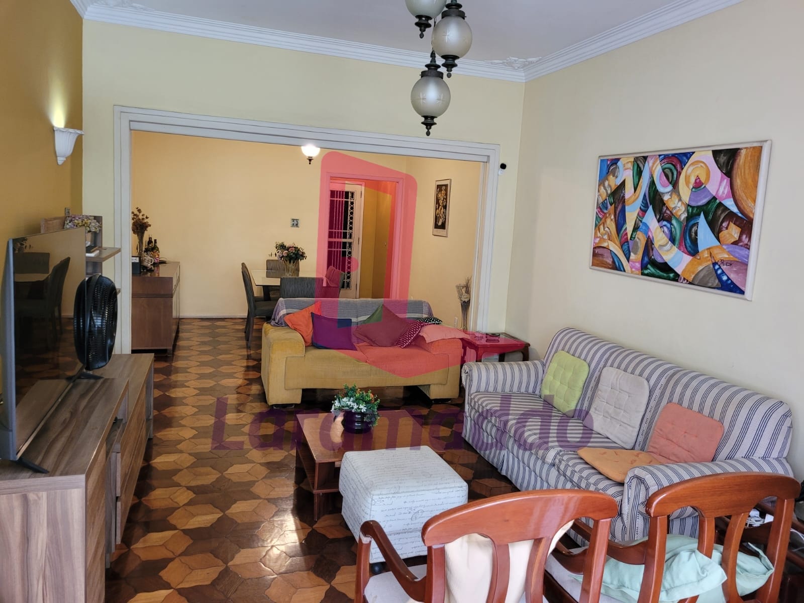 Laramaddo vende. Apartamento a venda localizado na quadra da praia. Sala ampla em dois ambientes, três dormitórios com armários embutidos, varanda que liga a sala e um dos quartos, copa/cozinha, dependência de empregada completa.