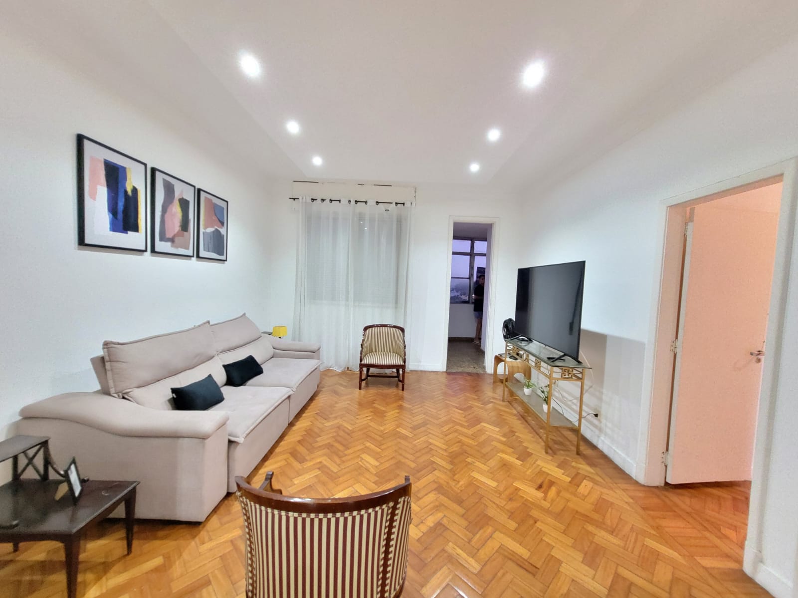 Laramaddo vende. Apartamento para venda localizado no Posto 6 de Copacabana, coladinho ao Forte de Copacabana, andar mediano, vista para copa das árvores e mar. Sala em dois ambientes, três dormitórios, sendo uma suíte, armários na suíte e no segundo quarto, cozinha planejada, dependência de empregada completa. Prédio redidencial com portaria 24h. Esse apartamento não possui vaga de garagem.