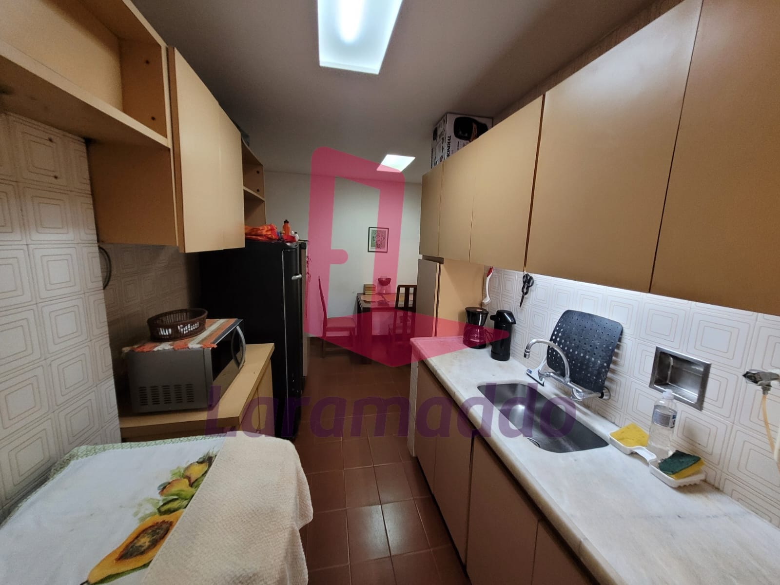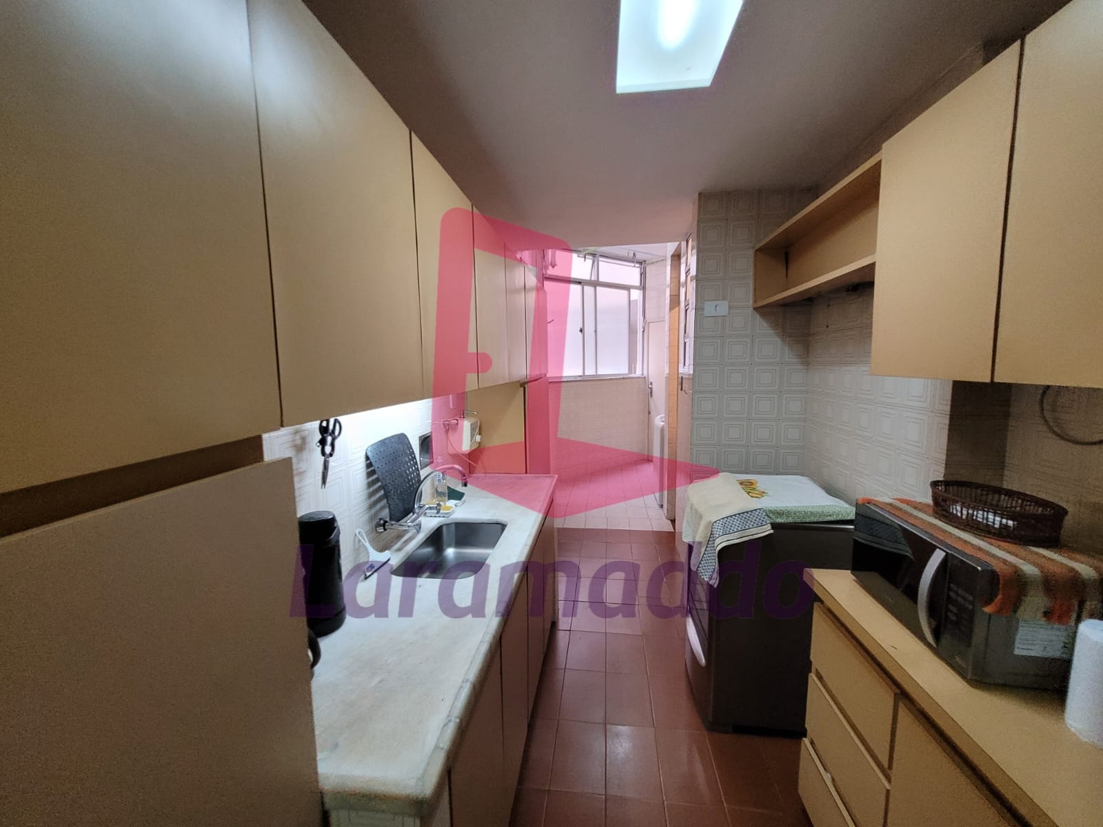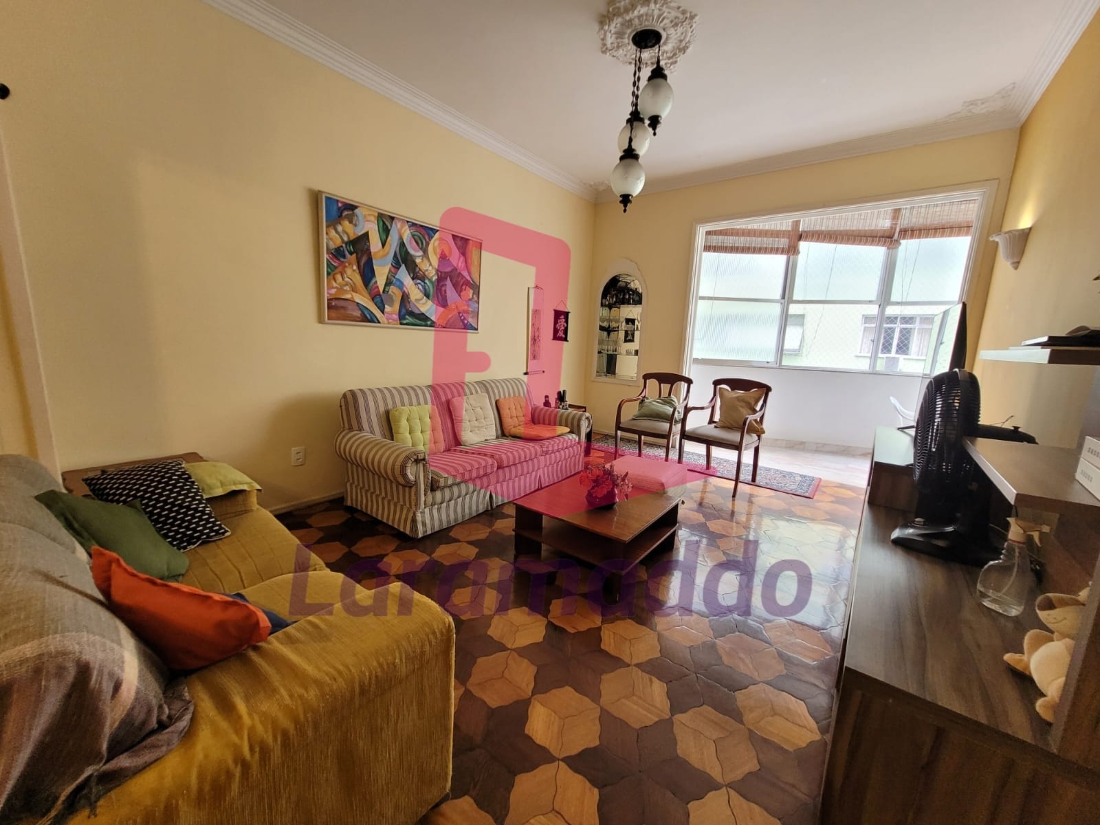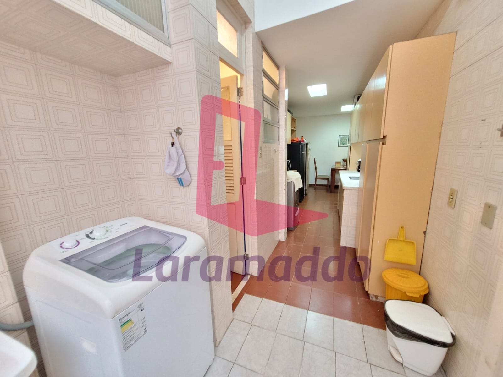 Laramaddo vende. Apartamento a venda localizado na quadra da praia. Sala ampla em dois ambientes, três dormitórios com armários embutidos, varanda que liga a sala e um dos quartos, copa/cozinha, dependência de empregada completa.
